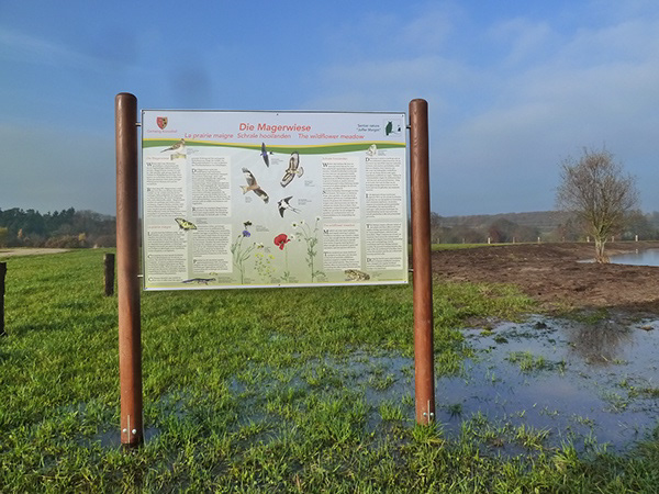 This was a large project that features 12 information panels (1,5 m x 1m), each focusing on a different biotop of the area, including the species that can be found within it. Each panel has text in four languages, as the area is primarily visited by tourists. The leaflet comes in a French/German and English/Dutch version.